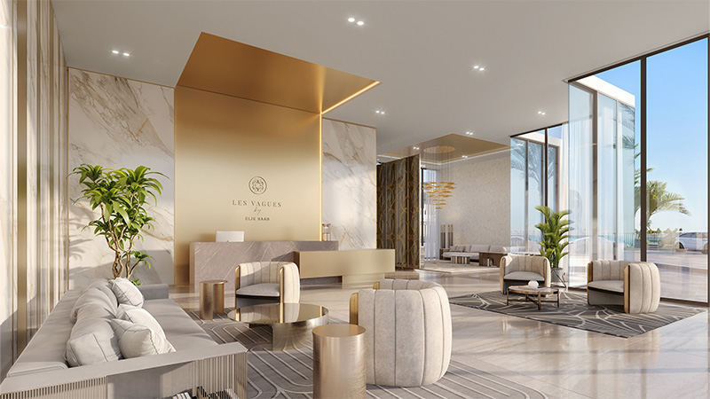 وتجسد الديكورات الداخلية جمال تصاميم “إيلي صعب” وتقدم مظهراً مفعماً بالأناقة، حيث تتماهى الأشكال والألوان بتناغم تام. كما روعي في تصميم المشروع التشطيبات المميزة والبراعة المطلقة ومستويات الجودة الاستثنائية التي تعزز جاذبيته، بفضل إبداع “إيلي صعب”.