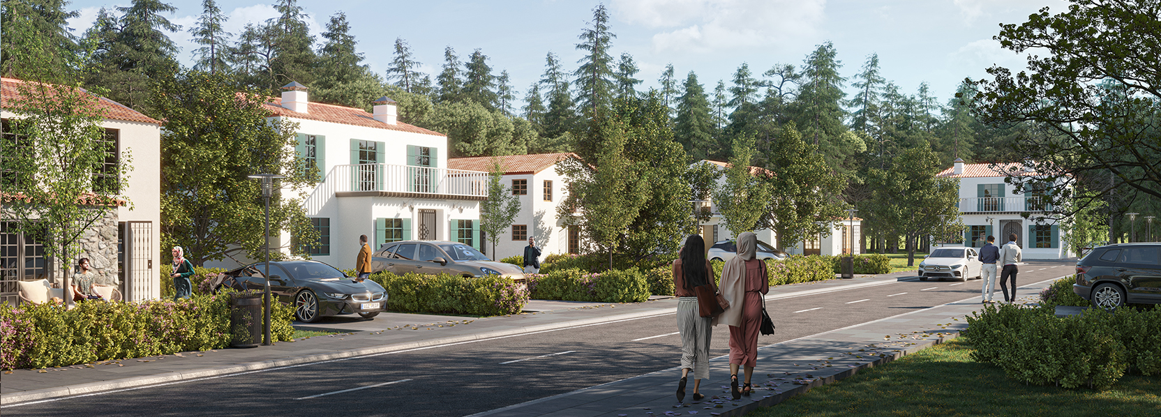 First-class amenities, restaurants and cafes, shops and supermarkets, a community mosque, a clubhouse, and a five-star hotel, all available at your disposal, punctuated only with lavish forestry, surrounding mountains, and a gentle breeze.